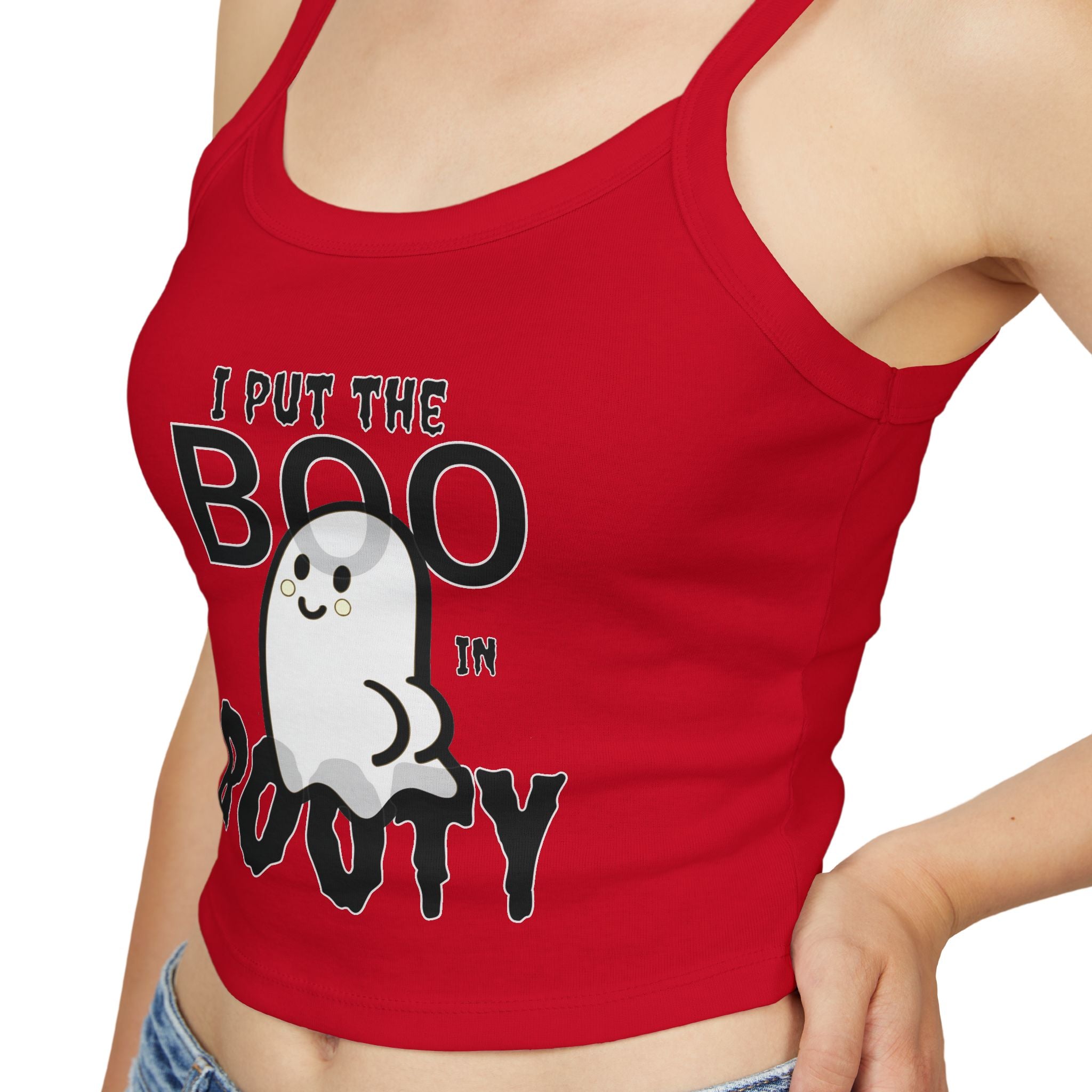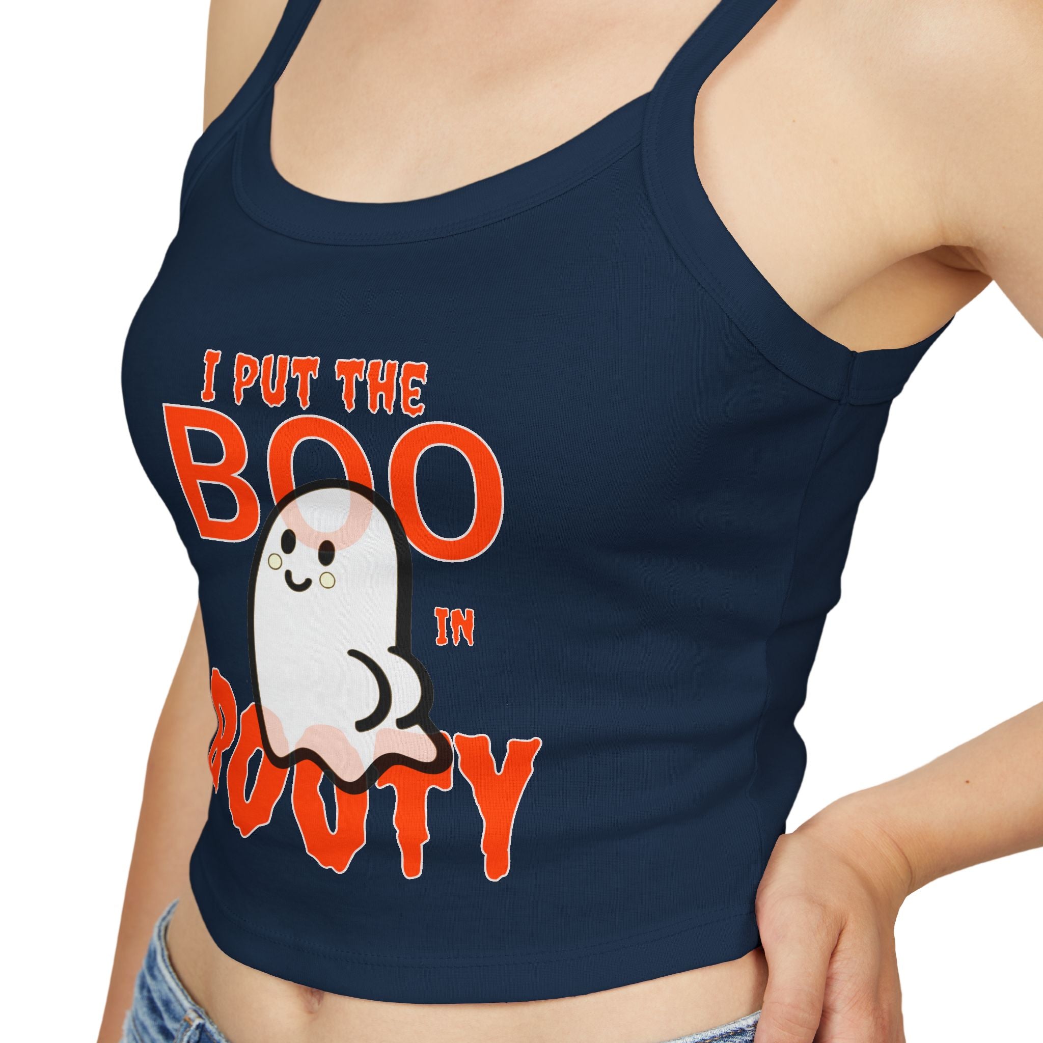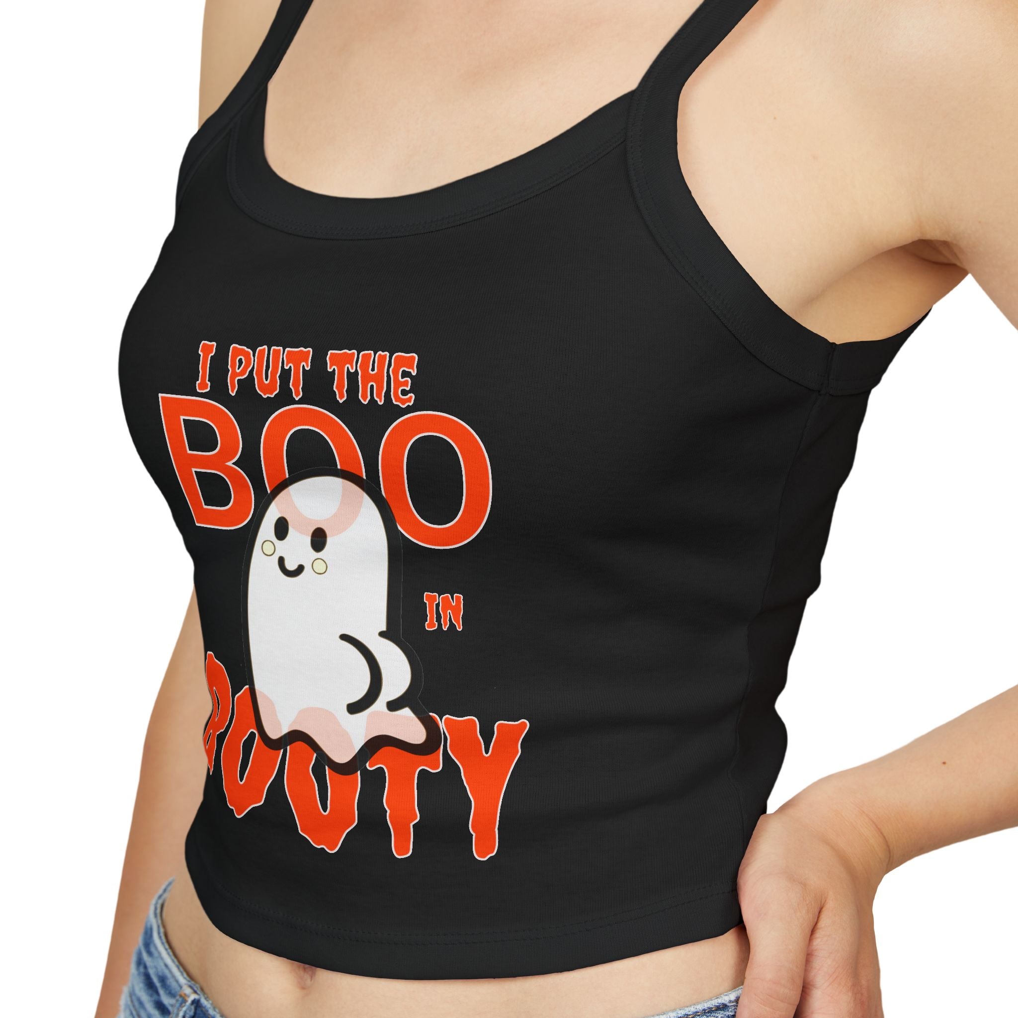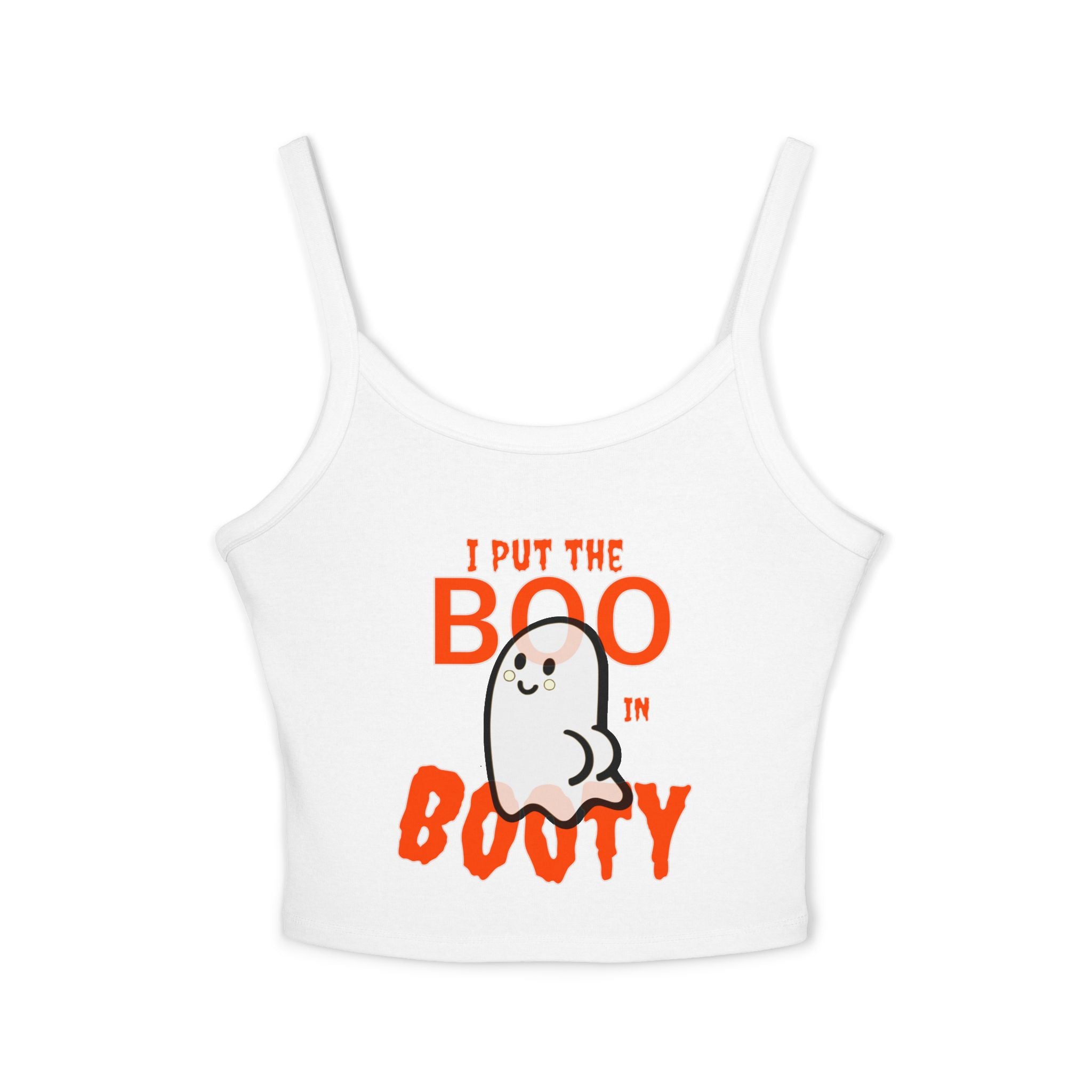 Introducing a playful and stylish Women’s Spaghetti Strap Tank Top that adds a fun twist to your casual wardrobe. This tank features a lighthearted graphic that reads, "I Put the Boo in Booty," perfect for Halloween celebrations or just a fun day out. Its soft, breathable fabric ensures all-day comfort, making it an ideal choice for layering or wearing alone. With its fitted silhouette and mid-length cut, it flatters a variety of body types and can easily transition from day to night. This tank top is perfect for women who love to express their personality through fashion, whether at home, at a party, or during spooky festivities with friends. A great gift for Halloween lovers, birthday parties, or just to add some fun to your everyday look!