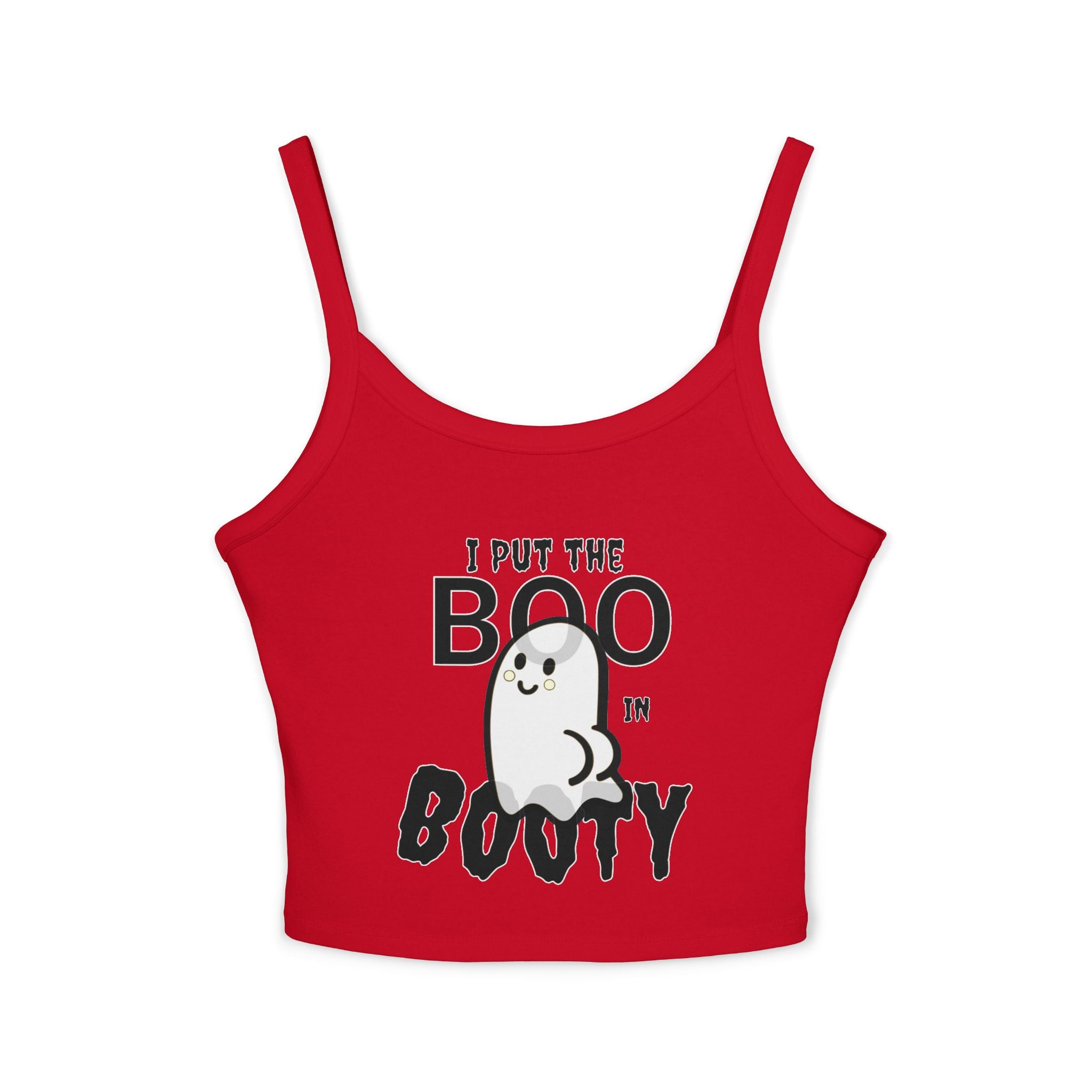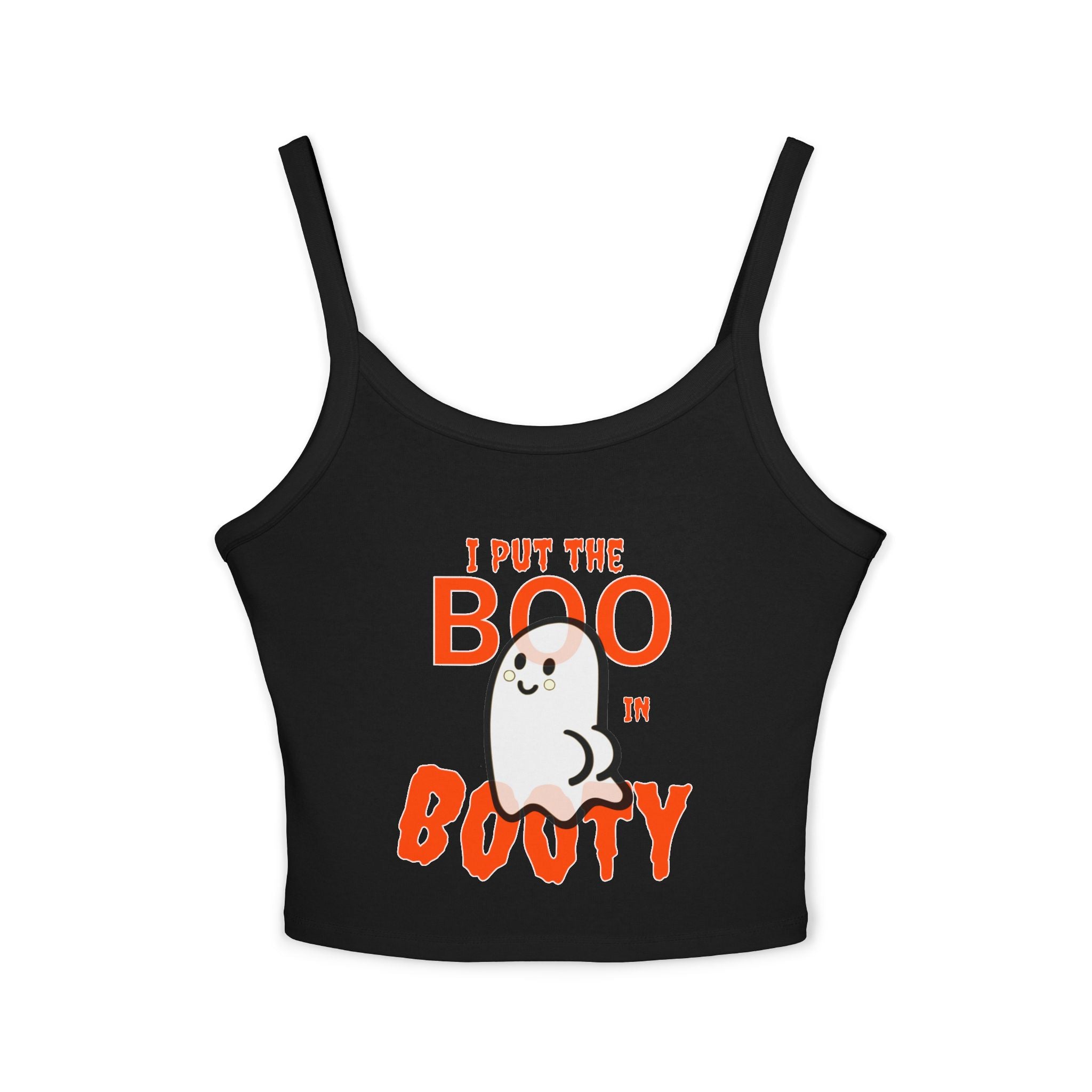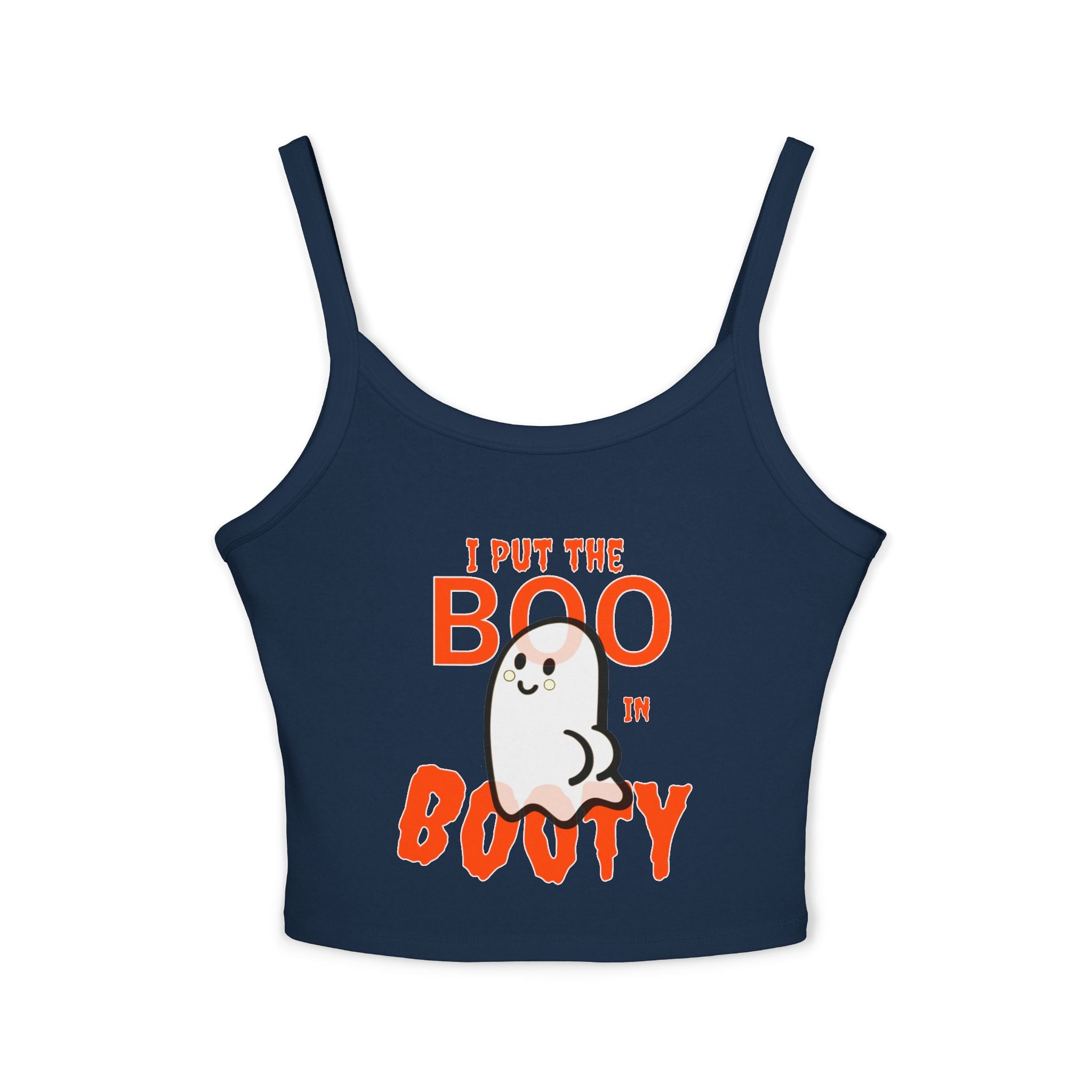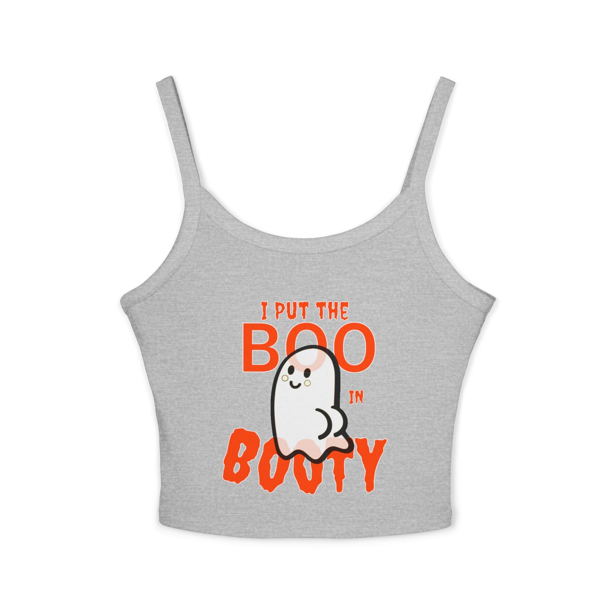Introducing a playful and stylish Women’s Spaghetti Strap Tank Top that adds a fun twist to your casual wardrobe. This tank features a lighthearted graphic that reads, "I Put the Boo in Booty," perfect for Halloween celebrations or just a fun day out. Its soft, breathable fabric ensures all-day comfort, making it an ideal choice for layering or wearing alone. With its fitted silhouette and mid-length cut, it flatters a variety of body types and can easily transition from day to night. This tank top is perfect for women who love to express their personality through fashion, whether at home, at a party, or during spooky festivities with friends. A great gift for Halloween lovers, birthday parties, or just to add some fun to your everyday look!
