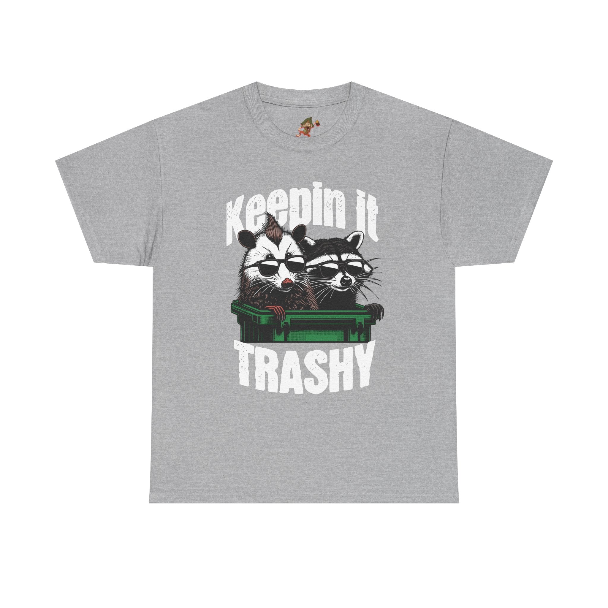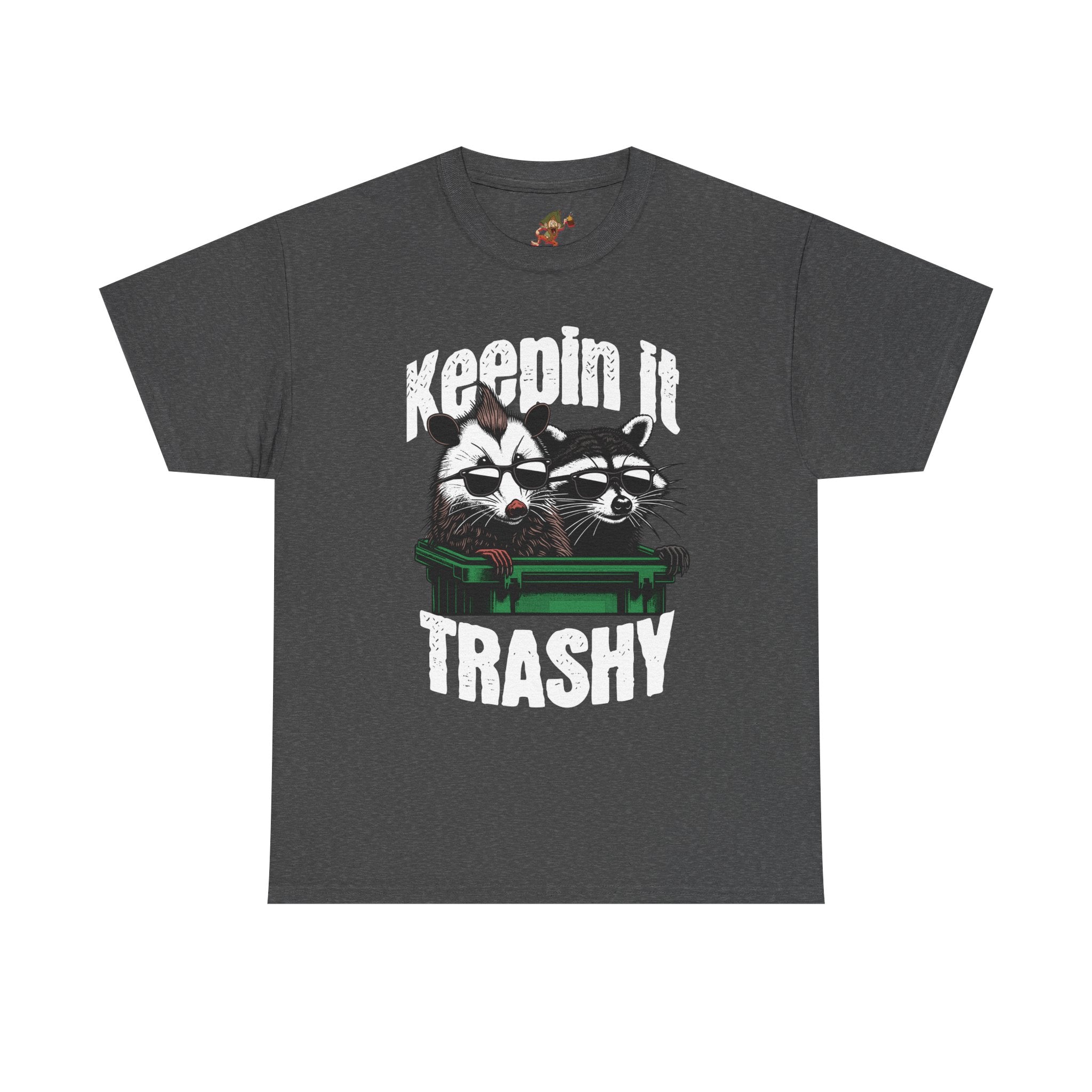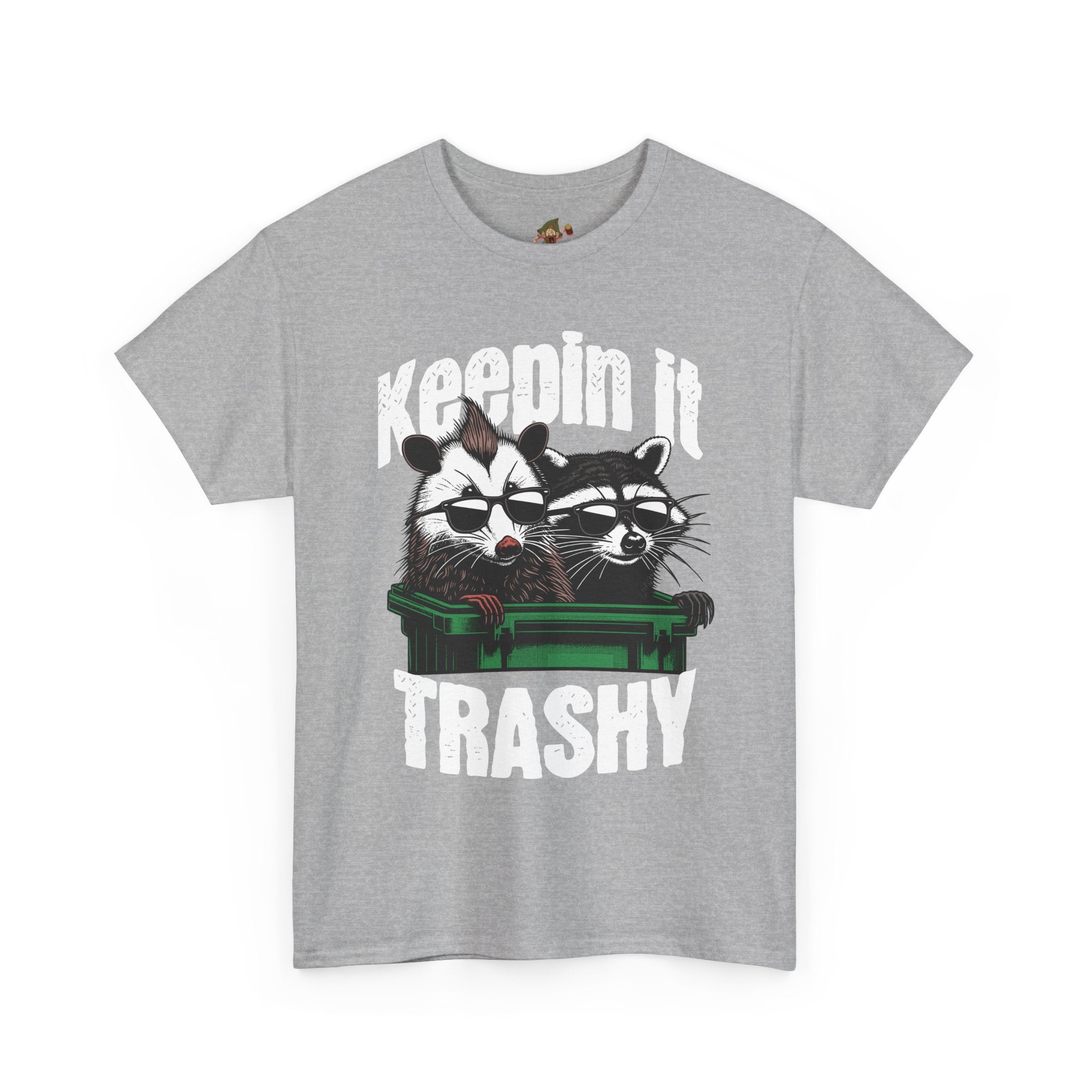 This Unisex Heavy Cotton Tee radiates a playful and humorous vibe, perfect for expressing your personality. Its bold graphic design featuring two raccoons and the phrase "Keepin' It Trashy" adds a fun twist to any casual outfit. Ideal for those who love to stand out and showcase their quirky side, this tee can easily become a staple in your wardrobe. Whether you're hanging out with friends, attending a casual gathering, or just enjoying a weekend retreat, this shirt fits seamlessly into any laid-back lifestyle. Great for gifting on occasions like birthdays, holidays, or simply for anyone who enjoys a light-hearted approach to life.